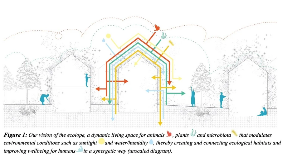 Um Städte biodiversitätsfreundlicher zu gestalten, muss auch die Architektur zur Förderung der Biodiversität aktiviert werden. Gebäude nehmen einen großen Teil der städtischen Fläche ein, und ihre Gestaltung ist Aufgabe der Architektur. Im Rahmen des EU-finanzierten FET-Open-Projekts ECOLOPES (2021–2025) haben wir untersucht, wie Architektur, computergestütztes Design und Ökologie integriert werden können, um ökologisch sinnvolle Gebäude zu schaffen5. ECOLOPES schlägt eine radikale Veränderung für die Stadtentwicklung vor: Anstatt die negativen Auswirkungen der Urbanisierung auf die Natur zu minimieren, streben wir eine Urbanisierung an, die so geplant und gestaltet ist, dass sich die Natur – einschließlich der Menschen – innerhalb der Stadt gemeinsam weiterentwickeln kann. Wir stellen uns einen neuen integrierten Ökosystemansatz für die Architektur vor, der Menschen, Pflanzen, Tiere und assoziierte Organismen wie Mikrobiota gleichermaßen in den Mittelpunkt stellt. ECOLOPES hat zentrale Ansätze, Modelle und Technologien bereitgestellt, die zur Verwirklichung dieser Vision beitragen werden. Weitere Informationen finden Sie auf der ECOLOPES Homepage.
